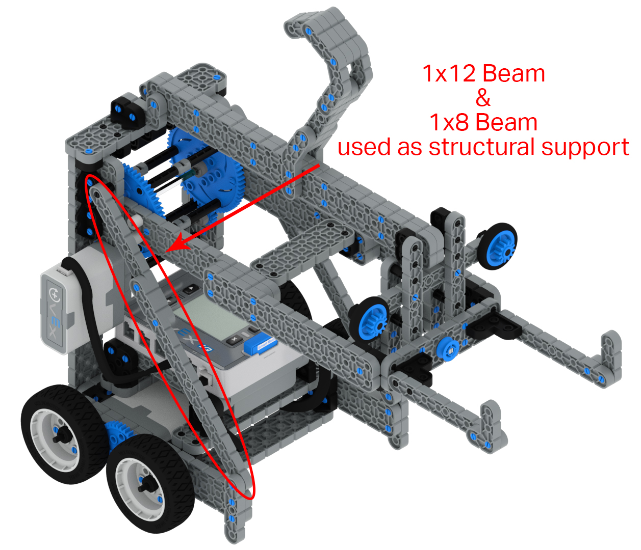 1x বিমগুলি কাঠামোগত উপাদানগুলির মধ্যে সবচেয়ে সংকীর্ণ। এগুলি বিশেষ কাঠামো একত্রিত করার জন্য আদর্শ যেমন একটি নখর সমাবেশের জন্য গ্র্যাবার বা রোবটে সংযোগ স্থাপনের জন্য একটি সাধারণ অংশ হিসাবে। উদাহরণস্বরূপ, একটি 1x বিম একটি টাওয়ার এবং একটি ড্রাইভট্রেনের মধ্যে একটি সহায়ক সংযোগ তৈরি করতে ব্যবহার করা যেতে পারে। 1x রশ্মিগুলি অন্যান্য কাঠামোগত টুকরোগুলির মতো কাঠামোগতভাবে শক্ত নয়, তবে তারা একে অপরের সাথে স্তরগুলিতে একসাথে সংযুক্ত হতে পারে যা তাদের বাঁকানো এবং মোচড়ানো থেকে উল্লেখযোগ্যভাবে সাহায্য করবে।