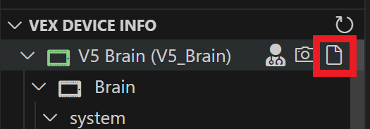 - V bočním panelu se otevře zobrazení VEX. V zobrazení VEX najeďte myší na ikonu VEX Brain nebo na text VEX Brain pod položkou VEX DEVICE INFORMATION.