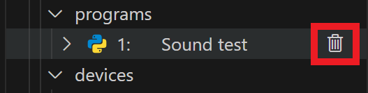- Das Symbol Papierkorb wird neben dem Programmelement angezeigt. Klicken Sie auf das Symbol Papierkorb . Das Programm wird vom VEX Brain