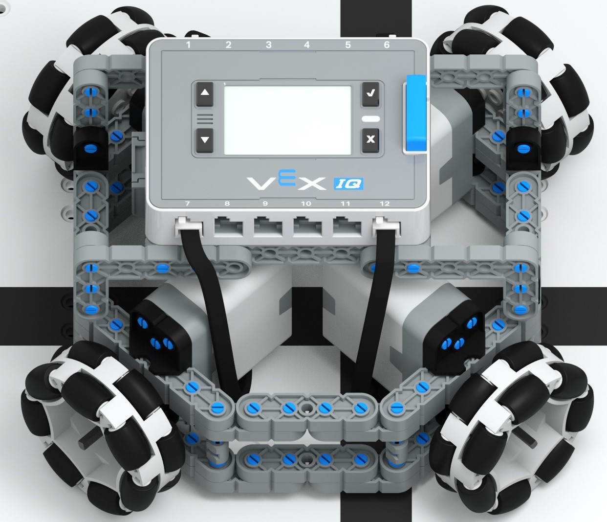 Diese holonomischen Antriebsstränge erfordern für ihre Bewegung einen komplexeren Programmiercode als der Standardantrieb. Der 3-Rad-Antrieb ist nicht so stabil wie der 4-Rad-Antrieb.