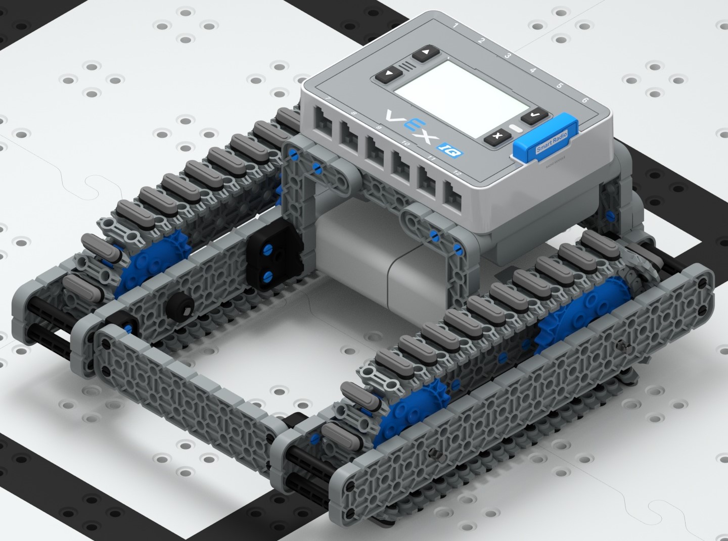 Track Drive es otra variación del tren motriz estándar que utiliza Tank Tread en lugar de ruedas. La banda de rodadura del tanque está incluida en el kit complementario de competición y está disponible con el kit de entrada y banda de rodadura del tanque. El Track Drive puede superar obstáculos fácilmente. Sin embargo, el Track Drive carece de la capacidad de ser omnidireccional. Se pueden agregar enlaces de tracción del kit de admisión y banda de rodadura del tanque a las huellas del tanque para aumentar la tracción de la transmisión. Las bandas de rodadura del tanque son impulsadas por ruedas dentadas de plástico VEX.