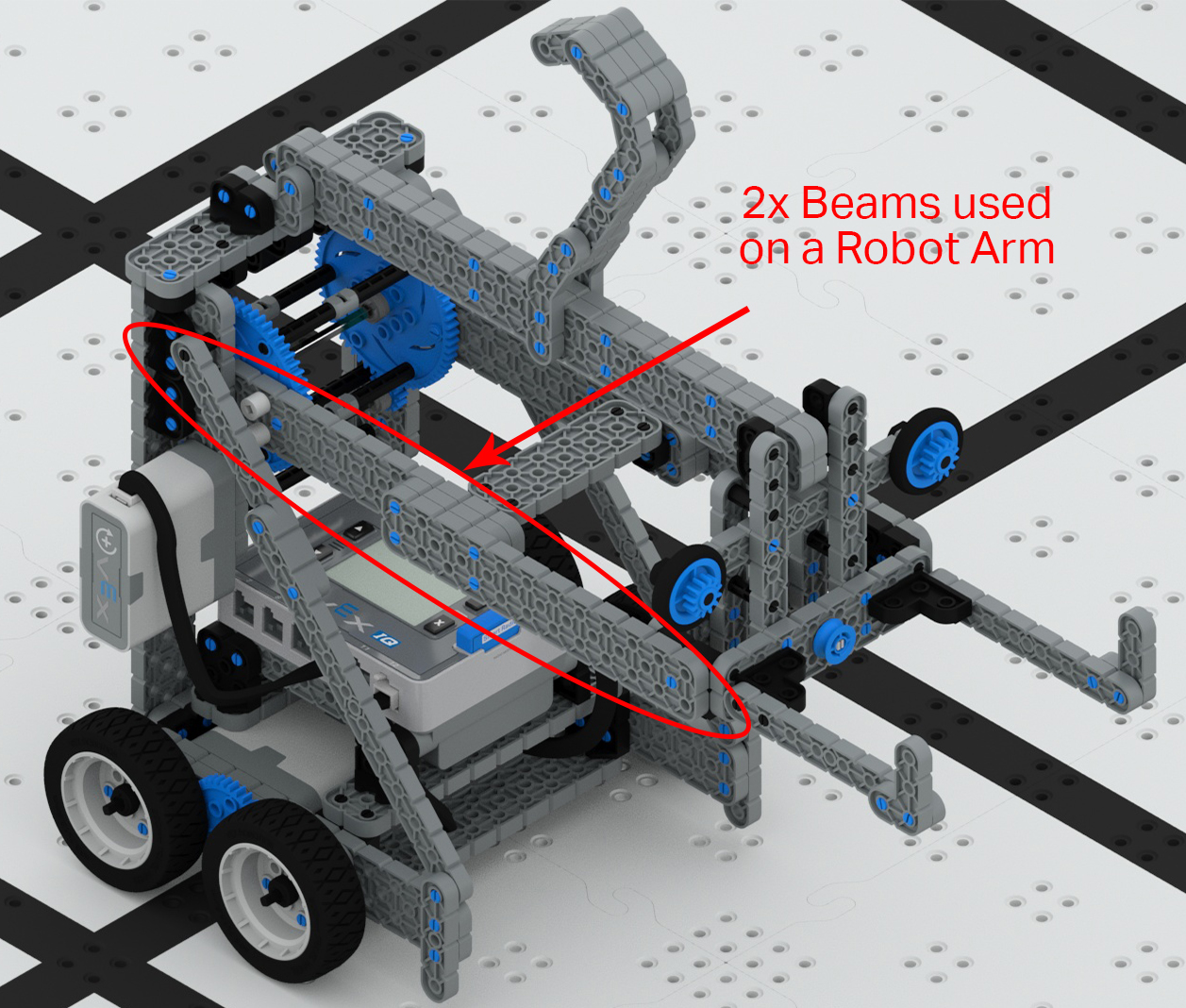 Oikean säteen tunnistamisen helpottamiseksi voi olla hyödyllistä sovittaa säde Kitin sisältöjulisteen kuviin tai käyttää tarkistuskulmakaaviota, joka löytyy useimpien VEX IQ -robotin rakennusohjeiden alusta. Erikoispalkkeja voidaan käyttää monissa erilaisissa robottirakenteissa, kuten VEX IQ Brainin asennuksessa, kynnen rakentamisessa tai koukun luomisessa, jonka avulla robotti voi ripustaa tangosta.