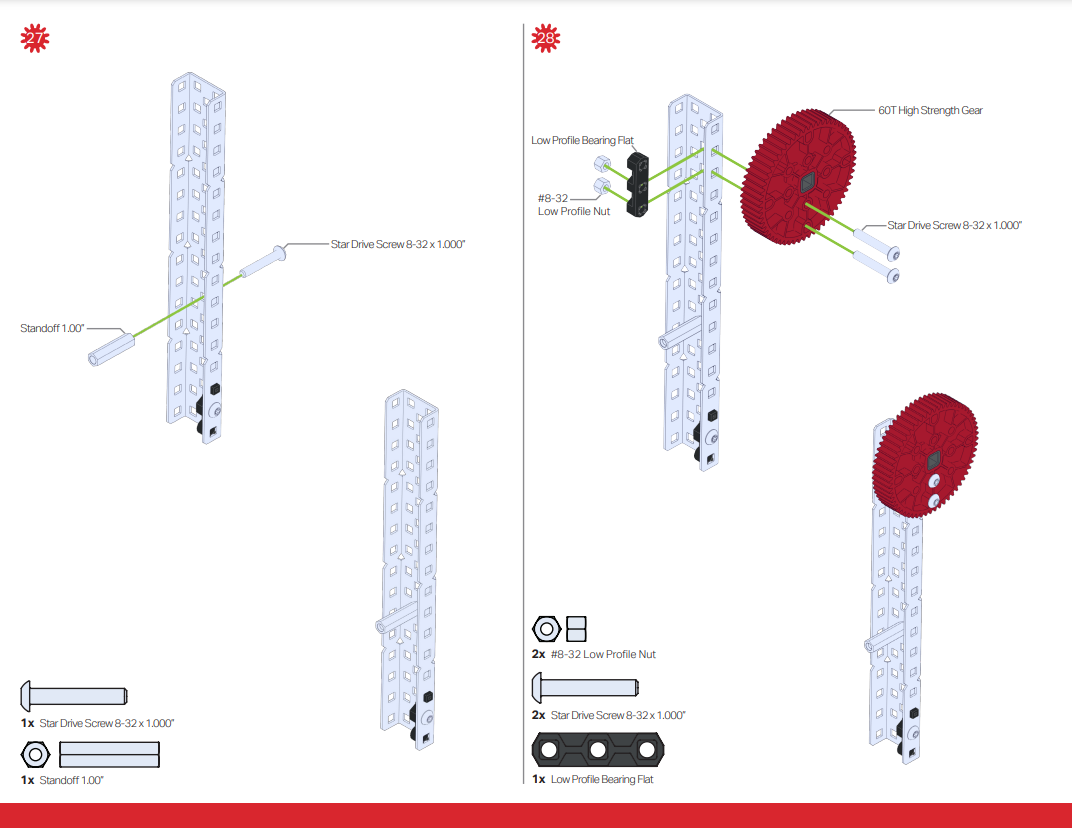 फास्टनर्स - VEX शैक्षिक रोबोट प्रणाली के पहले के संस्करणों में कसने के लिए हेक्स सॉकेट हेड के साथ स्क्रू का उपयोग किया जाता था। EXP प्रणाली स्क्रू के शीर्ष पर स्टार सॉकेट का उपयोग करती है। स्टार सॉकेट्स में स्ट्रिपिंग की संभावना कम होती है और यह आपको स्क्रू और नट सिस्टम को मजबूती से कसने की अनुमति देता है। EXP टूल्स और फास्टनरों के उपयोग हेतु विस्तृत मार्गदर्शिका के लिए, VEX लाइब्रेरी से यह लेख । फास्टनरों के बारे में अधिक के लिए देखें: