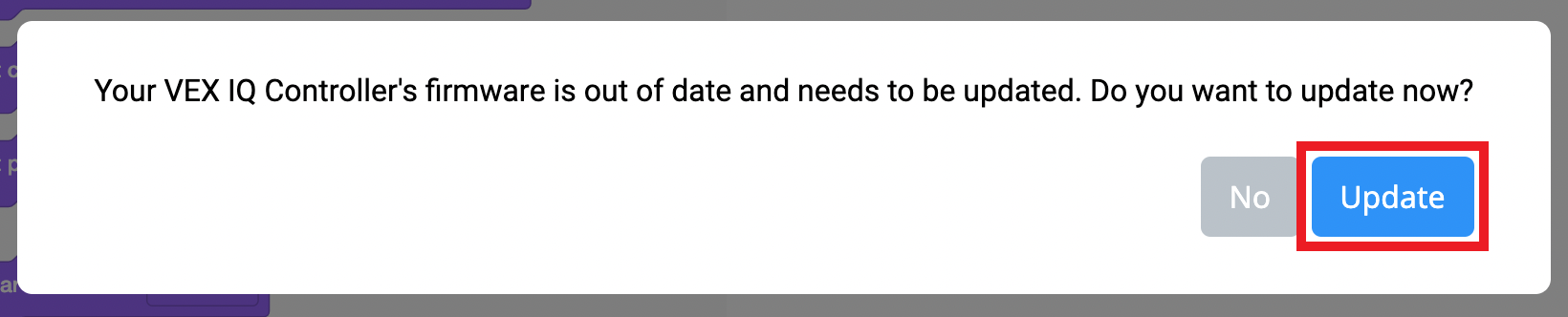 वेब-आधारित VEXcode IQ - प्राथमिक नियंत्रक फ़र्मवेयर की मरम्मत