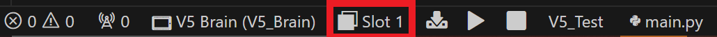Megjegyzés: A VEX agy nyolc férőhellyel rendelkezik a letöltött programok tárolására. A felhasználók a VS Code-on belüli slot kiválasztásával választhatják ki, hogy melyik slotot használják. Ne feledd, hogy a letöltés felülírja az előző programot a kiválasztott foglalat használatával. - Kattintson a Helyválasztó ikonra az eszköztáron.