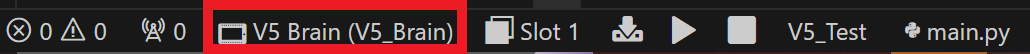 注: デバイス ピッカーは、VEX デバイスがコンピューターに接続されている場合にのみツールバーに表示されます。 接続されているVEXデバイスの種類(ブレインまたはコントローラー)を表すアイコンとブレイン名が表示されます
