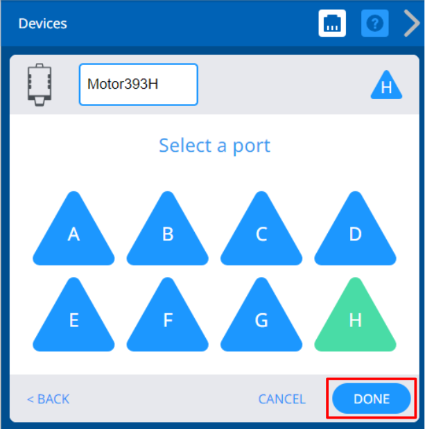 Iš įrenginių sąrašo pasirinkite VEX Motor-393.