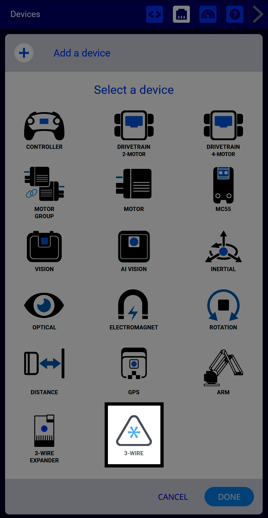 2. Wybierz SERVO z listy urządzeń 3-Wire.