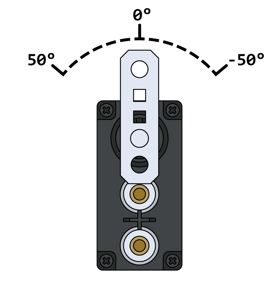 เซอร์โว 3 สาย VEX มีช่วงทั้งหมด 100 องศา โดยมีขอบเขตล่างอยู่ที่ -50 องศา ขอบเขตบนอยู่ที่ 50 องศา และ 0 องศาเป็นจุดศูนย์กลางที่