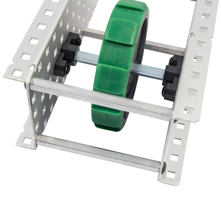 - 两个橡胶轴套可防止 4 英寸车轮在轴上前后滑动